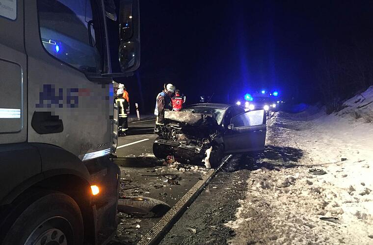 Nach einem Frontalzusammenstoß mit einem Lastwagen bei Berg ist ein Auto in Brand geraten. Die Autofahrerin erlag ihren lebensgefährlichen Verletzungen.