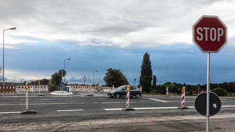 Inzwischen hat sich auch an der Zufahrt Ost zum Gewerbepark einiges getan. Die Kreuzung mit der Staatsstraße nach Großlangheim und der Panzerstraße durch den Klosterforst ist in den vergangenen Wochen ausgebaut und durch weitere Abbiegespuren ergänzt worden. Die Kreuzung selbst ist fertig, an der direkten Zufahrt in der Gewerbepark wird derzeit noch gearbeitet.