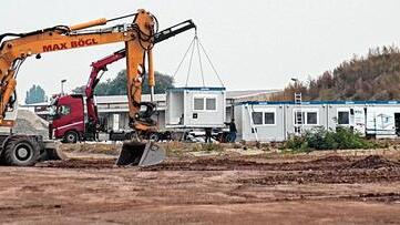 Nach einem firmeninternen ersten Spatensicht laufen seit ein paar Tagen die Bauarbeiten für das neue Verteilerzentrum im Kitzinger Gewerbepark conneKT. Es ist das bisher größte Projekt auf dem Gelände der ehemaligen US-Kaserne Harvey-Barracks.
