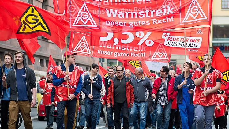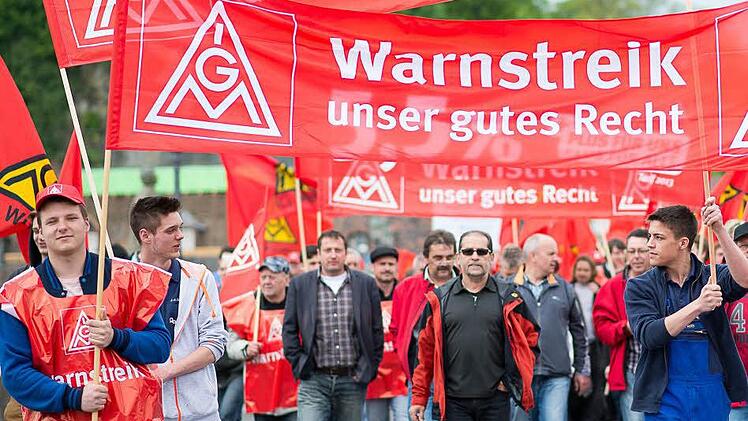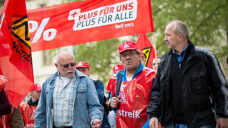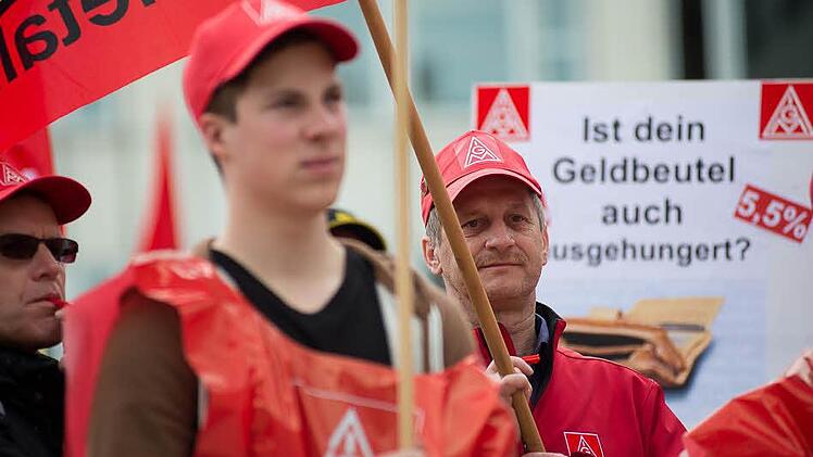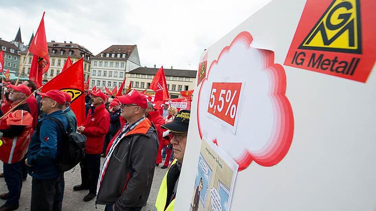 Mit einer geringeren Lohnerhöhung als 5,5 Prozent wollen sich die Beschäftigten der Metall- und Elektrobranche nicht abspeisen lassen. Dafür gingen sie am Dienstag in Würzburg auf die Straße.