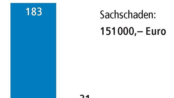 Gut die Hälfte der Karambolagen (101) waren Kleinunfälle. Bei 33 Verkehrsunfällen flüchteten die Verursacher unerlaubt vom Unfallort, was eine Anzeige an die Staatsanwaltschaft nach sich zieht. In zwei Fällen waren die Verursacher alkoholisiert, bei weiteren zwei Fällen standen die Verursacher unter Drogeneinfluss. Nicht angepasste oder überhöhte Geschwindigkeit war sieben Mal die Ursache. Bei diesen geschwindigkeitsbedingten Unfällen wurden fünf Personen verletzt. Der Sachschaden lag bei 151 000 Euro.