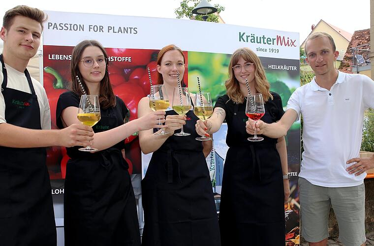 So schmeckt der Sommer: Hausgemachter Eistee und gekühlte Cocktails der Firma Kräuter Mix haben beim Abtswinder Genussortfest für erfrischende Momente gesorgt. Der Stand des inhabergeführten Familienunternehmens war eine der Stationen, an denen die Besucher sehen, riechen und schmecken konnten, was Abtswind zu bieten hat. Mit 500 Beschäftigten ist Kräuter Mix als Produzent von luftgetrockneten Kräutern, Gemüsen, Gewürzen und Tees der größte Arbeitgeber und Ausbildungsbetrieb für kaufmännische, gewerbliche und technische Berufe in der Gemeinde.