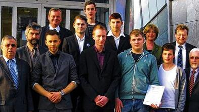 Mit einer Urkunde, einem Scheck sowie einer Kinogutscheinbox wurden die Leistungen der Besten von der Innung besonders gewürdigt: Im Bereich Feinwerkmechanik, Fachrichtung Maschinenbau und Feinmechanik erzielten Maximilian Huber aus Sulzfeld (Ausbildungsbetrieb Kinkele GmbH & Co.KG, Ochsenfurt), Tobias Haase aus Wiesentheid (Ausbildungsbetrieb Werner Drobek Maschinenbau, Iphofen) und Stefan Will aus Albertshofen (Ausbildungsbetrieb Göpfert Maschinen GmbH, Wiesentheid) die besten Ergebnisse.