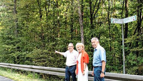 Jetzt endet der Radweg, von Großlangheim kommend, gut hundert Meter vor der Autobahnbrücke und geht dann in Richtung Wald und durch einen Tunnel nach Hörblach weiter. Für den Lehrer bedeutet das: Jeder Schüler wird einzeln über die relativ stark befahrene Straße gelotst. Das hätte ein Ende, wenn der Radweg beim Autobahnneubau direkt an der Straße über die Brücke geführt wird. Dass nicht nur die Sicherheit eine Rolle spielt, wurde beim Ortstermin am Montag mit dem CSU-Landtagsabgeordneten Otto Hünnerkopf, Landrätin Tamara Bischof und Schwarzachs Bürgermeister Volker Schmitt deutlich.