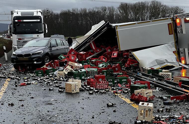 20 Tonnen Bierkästen auf A3 verteilt: Junge Truckerin löst hohen Schaden aus