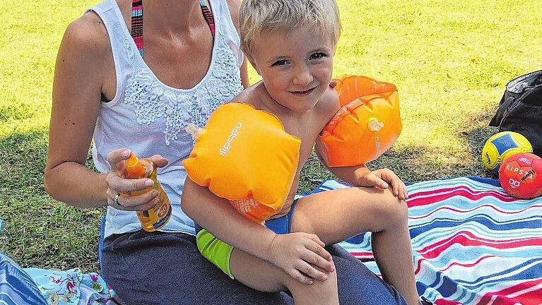 „Wir hatten sowieso Schwimmschuhe zuhause“, sagt Mutter Sabine. Zuvor hatten sich alle drei Kinder dort die Zehen beim Planschen aufgerissen. Nun gehen die Kinder eben vorsorglich mit Schlappen ins Wasser. Für die Brands kein Problem; sie sind Fans des Freibads. „Wir kommen schon immer hierher.“ Volkach sei der Treffpunkt für viele Familien aus Püssensheim, Prosselsheim und die Kürnacher Schulfreunde der Kinder.