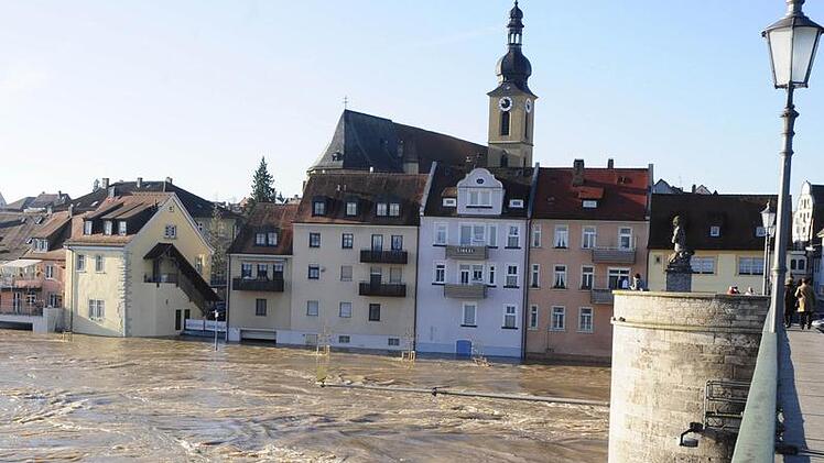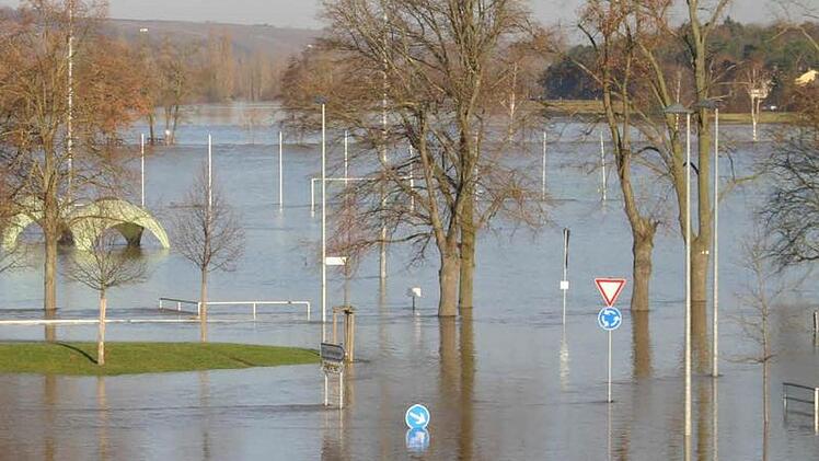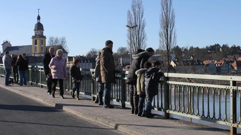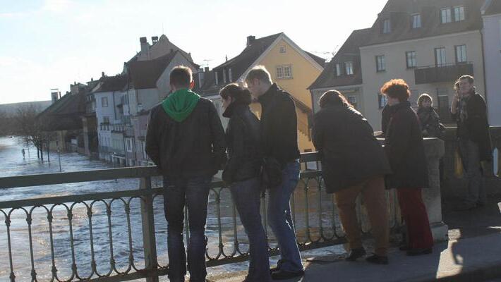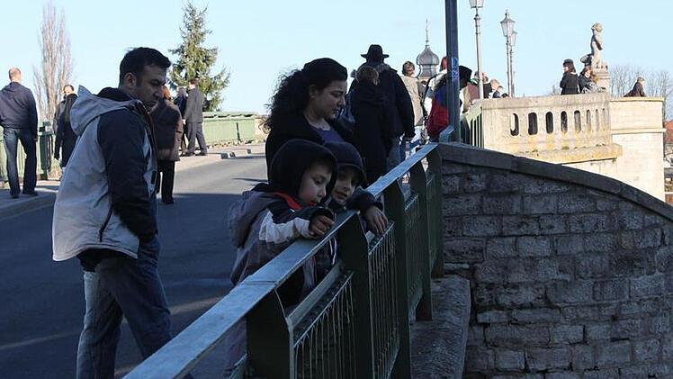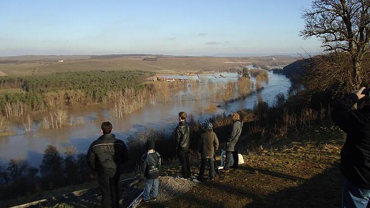 Zahlreiche Schaulustige nutzten das sonnige Wetter, um einen Blick auf das Hochwasser im Landkreis Kitzingen zu werfen - ob von der Alten Mainbrücke in Kitzingen oder Aussichtspunkten an Parkplätzen.