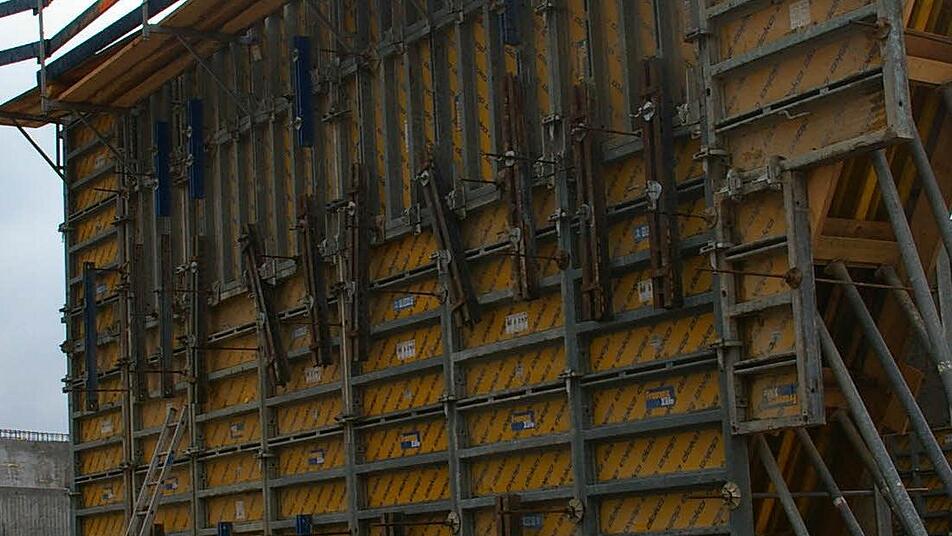 Arbeiten gehen in die Höhe Wenn nicht tief, so wird doch sichtbar hoch gearbeitet. Zwei so genannte Widerlager ragen bereits mehrere Meter rechts und links der Staatstraße 2271 in die Höhe. Der erste der beiden war bereits letztes Jahr fertiggestellt worden, der Stadtseitige wird in diesen Wochen hochgezogen. Pro Widerlager beziehungsweise Brückenpfeiler wird ein Volumen von 400 Kubikmetern Beton vergossen. "Mit dem Stahl haben die beiden Pfeiler dann ein Gewicht von rund 1000 Tonnen", so der Tiefbau-Fachmann. "Das braucht man dann auch, um die Kräfte des Verkehrs aufzunehmen."
