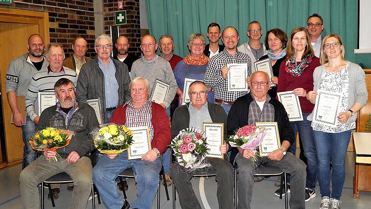 Schließlich wurden zahlreiche Mitglieder ausgezeichnet. Zunächst würdigte Vorsitzender Andrè Paulus die Verdienste von Paul Leicht, Richard Bäuerlein, Willi Glaser und Norbert Braun, die aufgrund besonderer Vereinsaktivitäten zu Ehrenmitgliedern ernannt wurden. Des Weiteren wurden geehrt: Für 75-jährige Mitgliedschaft: Norbert Kram, 70 Jahre: Anton Christ, 65 Jahre: Reinhard Lamer, Paul Leicht und Emil Knoblach, 60 Jahre: Hans- Peter Röschert, Gotthard Wiget, Albert Gürsching, Bernd Burkard, Hans Bunzelt, Norbert Braun und Gudrun Braun, 50 Jahre: Otmar Wolf, Manfred Seufert, Thomas Scholl, Peter Glaser, Paul Glaser und Dieter Brühl, 40 Jahre: Klaus Rossdeutscher, Margit Reichert, Roman und Isolde Gürsching, Tanja Gleixner, Michael Büttner, Ralf Bäuerlein, Dieter Bäuerlein, Ralph Braun und Luise Braun und 25 Jahre: Tamara Braun, Daniel Friedrich, Christa Glaser, Verena Glos, Andreas Helbig, Roland Leibold, Daniel Leicht, Theresa Nippert, Birgit Rösch und Theresa Sauer.