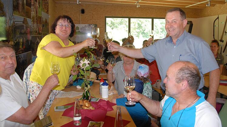 Hans Brummer hieß mehrere Bürgermeister und die stellvertretenden Landrätinnen und Räte Robert Finster (Kitzingen), Thomas Vizl (Schweinfurt) und Ruth Halbritter (Neustadt/Aisch) willkommen. Halbritter war sogar an ihrem Geburtstag gekommen und alle stießen auf ihr Wohl an. Brummer erläuterte, dass die Stadt Iphofen ihr Naturtourismus-Konzept in der nahen Vergangenheit überarbeitet und vor Jahren das Life-Projekt umgesetzt habe. Zielsetzung seien der sanfte Tourismus und die Wissensvermittlung durch den Mittelwald-Pavillon sowie Führungen der Naturpark-Ranger. Mit dem ehrenamtlichen Einsatz der Aktiven in Steigerwaldclub-Zweigvereinen werden auch diverse Wanderwege in Schuss gehalten, die nun Stück für Stück mit der Beschilderung vereinheitlicht werden sollen. Auch Gästeführer wie Gerd Fründ tragen dazu bei, den Menschen die Natur näher zu bringen.