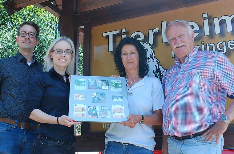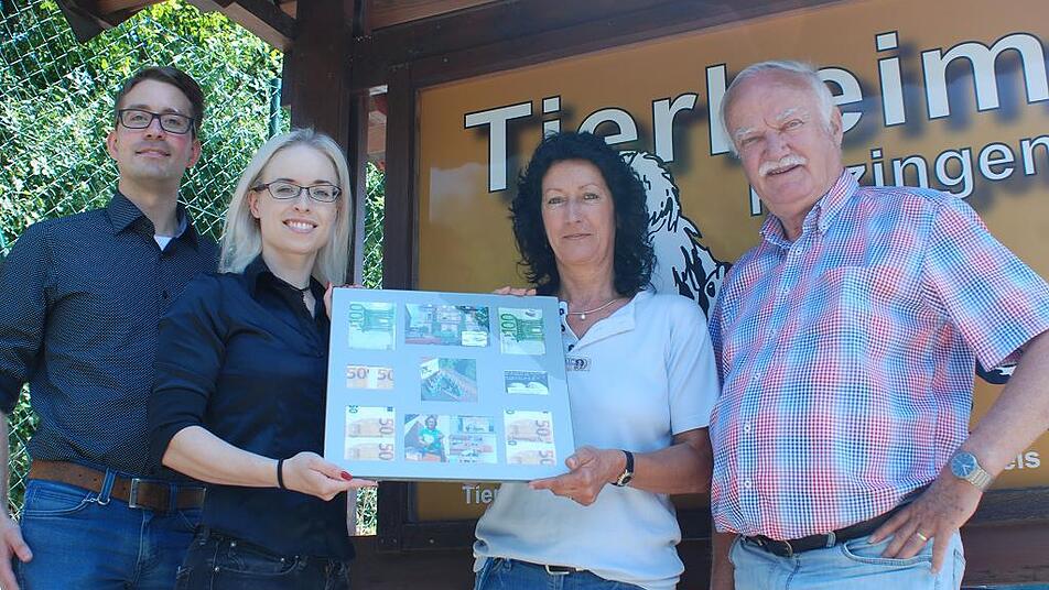 Leiterin Angela Drabant und Tierschutzvereinsvorsitzender Gerd Menche nahmen die Summe in einem fantasievoll mit Geldscheinen dekorierten Rahmen mit Freude entgegen. Schließlich steht das Kitzinger Tierheim vor riesigen Herausforderungen, seit der Untergrund der Einrichtung in der Kaltensondheimer Straße nachgibt und ein Neubau an anderer Stelle wohl unausweichlich ist.