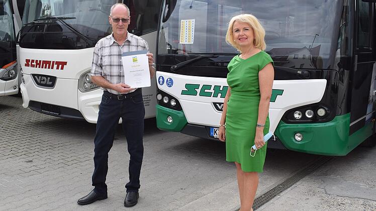Rolf Schmitt freute sich über die Auszeichnung, wenn auch mit etwas getrübter Stimmung, stehen doch die meisten seiner 25 Busse wegen der Corona-Pandemie aktuell abgemeldet auf dem Betriebshof.