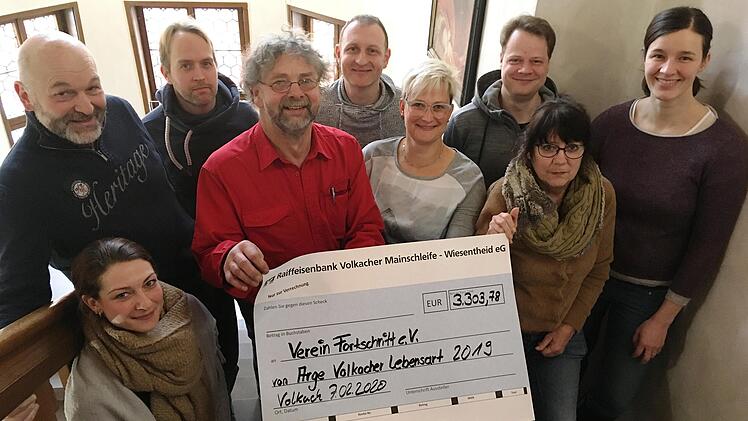 Sechs Winzer und zwei Gastronomiebetriebe aus Volkach veranstalten jährlich das kulinarisch musikalische Winzerhoffestival Volkacher Lebensart. Die beteiligten Betriebe haben sich in einer Arbeitsgemeinschaft zusammengeschlossen und den Beschluss gefasst: Sollte durch den Verkauf der Eintrittstickets für das zweitägige Festival nach Abzug aller Kosten ein Gewinn verbleiben, wird dieser gespendet. Vor wenigen Tagen war es nun soweit, heißt es in einer Pressemitteilung. Die beteiligten Winzer und Gastronomen der ArGe Volkacher Lebensart 2019 überreichten einen Scheck über 3303,78 Euro an den Verein Fortschritt. Schon jetzt werden die Weichen für die musikalisch-kulinarische Volkacher Lebensart 2020 gestellt. Die Veranstaltung ist für Freitag, 5. und Samstag, 6. Juni, vorgesehen. Karten wird es ab Mitte April im Vorverkauf geben.