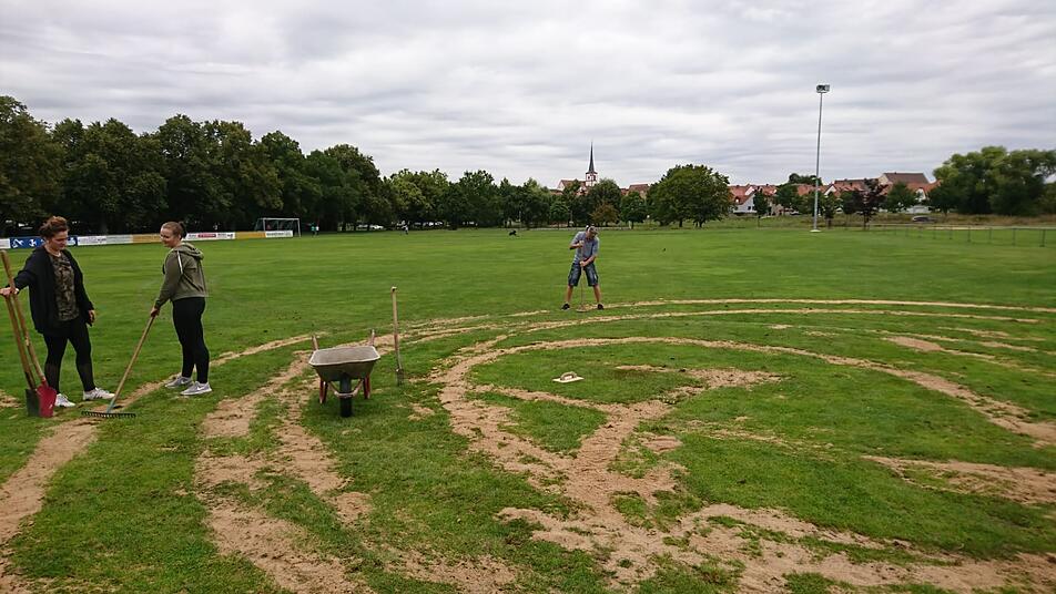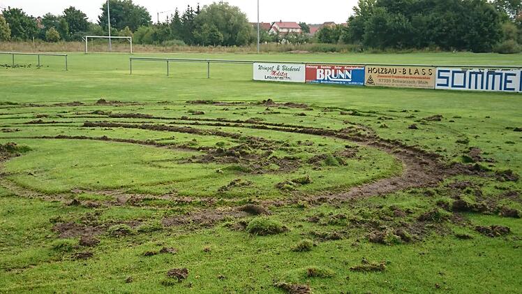 Nachdem ein Fahrzeug den Fußballplatz in Sommerach verwüstet hat, haben Helfer das Möglichste getan, um die Schäden auszubessern. Die Suche nach dem Täter geht weiter.