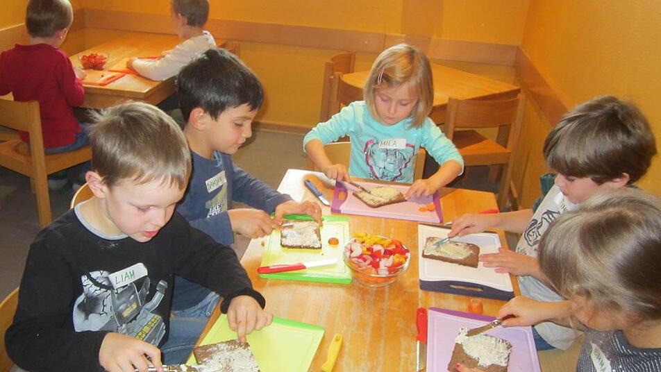 Leckere Butterbrote schmierten die Kinder aus dem Kindergarten Schwalbennest in Bibergau kürzlich. Das hatte seinen Grund.