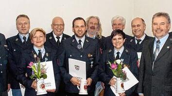 Ehrungen, 40 Jahre bei der Feuerwehr: Willi Albrecht, Kurt Frieß, Reinhard Rückert; 25 Jahre: Andrea Linz, Markus Schatz, Heike Wolf; Ausgeschieden: Günter Schatz, Günter Wolf.