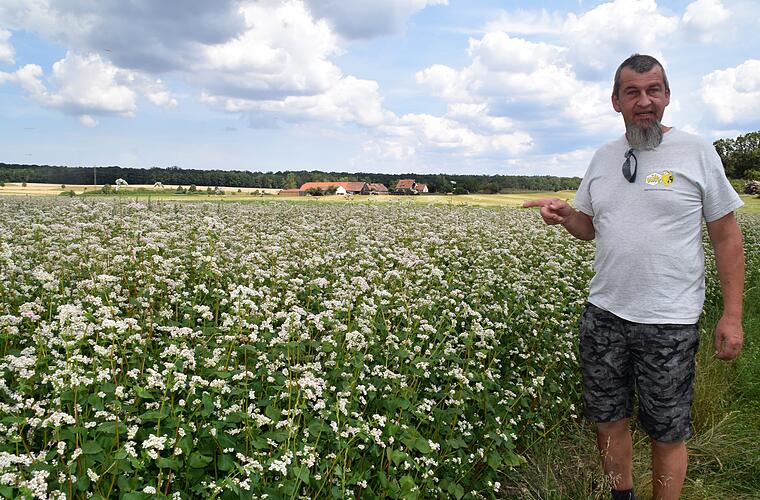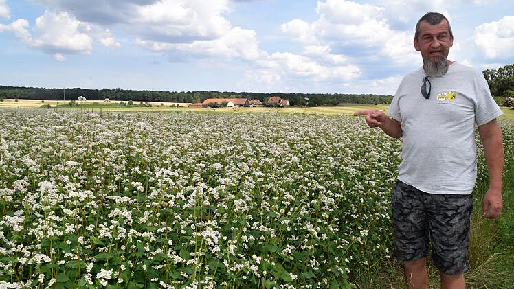 Bio-Landwirt Stefan Lenzer experimentiert mit Buchweizen - und leistet damit auch einen Beitrag zum Artenschutz. Die Anbaufläche im Landkreis liegt derzeit bei 1,3 Hektar.