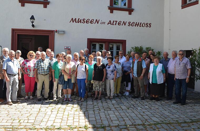 Wenn einer eine Reise tut, dann kann er was erzählen: beispielsweise von 4000 Weihern im Aischgrund und von 40 Störchen in der Gemeinde Birnbaum, Heimatort von Richard Henninger, Vorsitzender der Siebnervereinigung Neustadt-Nord, der zugleich als sachkundiger Führer der Ausflugsgruppe des Feldgeschworenenkreisverbandes Kitzingen zur Verfügung stand. Dass schon Karl der Große hier 800 Fischweiher als Löschteiche und für die Fischzucht anlegen ließ oder die Kormorane heutzutage jährlich mehr „wegfressen“ als die deutsche Fischfangflotte im gleichen Zeitraum fangen, wird so manchem Teilnehmer der 90-minütigen Weiherrundfahrt im Gedächtnis bleiben. Dass aber der älteste Karpfen in Deutschland 50 kg Gewicht und das biblische Alter von 60 Jahren erreicht haben soll, hinterließ größten Eindruck. Ein Schlenkerla in Bamberg mit Schifffahrt und anschließendem Kaffee am malerischen Schloss Seehof mit seinen Wasserspielen rundete die Ausflugsfahrt ab.