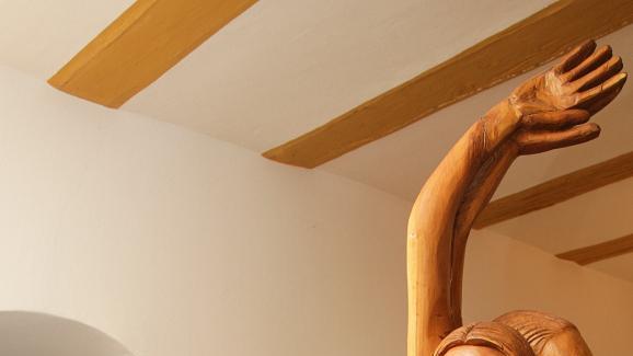 Ebenfalls aus Südamerika, genauer aus Brasilien, stammt der Bildhauer Klaas Koch-Weser. „Meine Liebe zum Holz erleben Sie in den Figuren“, sagt der Künstler in seiner kurzen Einführung in die Ausstellung. Der Dschungel in Brasilien, die Einsamkeit als Kind dort und zwei Freunde: Sein Pferd und sein Taschenmesser. Im Urwald entdeckte er schnell, dass bestimmte Holzstrukturen, Äste, deren Löcher im Holz, die Maserung eigentlich schon die Kunstwerke waren. Da musste nicht mehr viel mit dem Messer gemacht werden, um ausdrucksstarke Skulpturen zu schaffen.