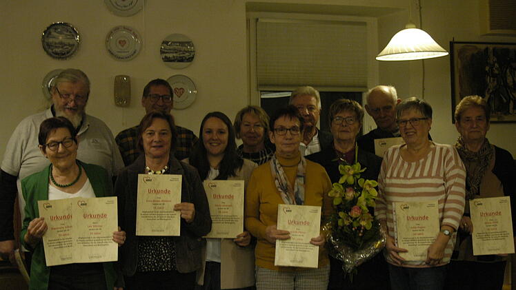 Im Rahmen der Jahreshauptversammlung der AWO Repperndorf wurden langjährige treue Mitglieder von der 1. Vorsitzenden Erna - Riedel - Kümmel und dem stellvertretenden AWO Bezirksvorsitzenden Gerald Möhrlein gebührend geehrt.