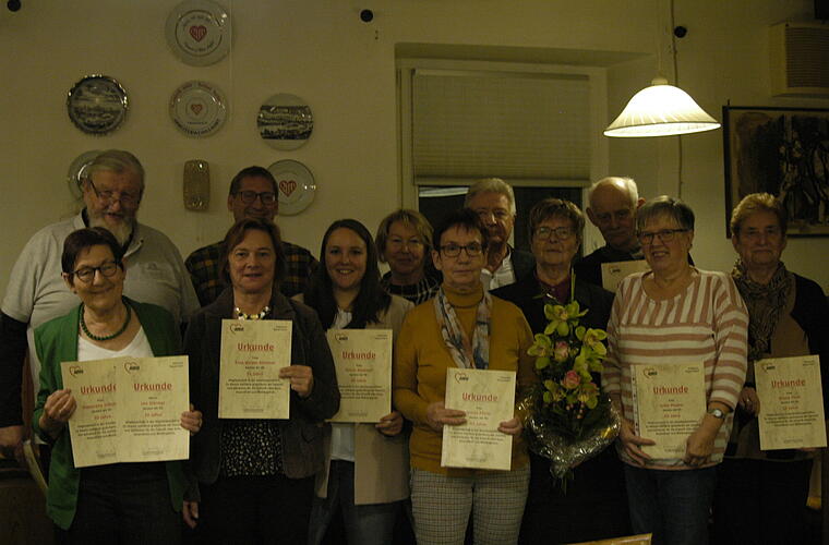 30 Jahre: Kurt Krüger, Manfred Büttner, Otto Brixner, Gertraud Brixner, Ursula Pinkl, Jutta Queck, Gerda Geitz, Brunhilde Schrott, Rosemarie Stürmer, Leo Stürmer und Friederike Zischler.