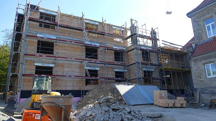 "Seit Oktober 2019 wird gebaut", erklärt Einrichtungsleiter Franz Bernitzky gemeinsam mit Stellvertreterin Ulrike Schürger. An- und Erweiterungsbauten, die in der Nachkriegszeit entstanden sind, wurde inzwischen abgebrochen. An ihrer Stelle ist jetzt ein dreistöckiger Neubau zu sehen, das Dach soll nach Möglichkeit begrünt werden.