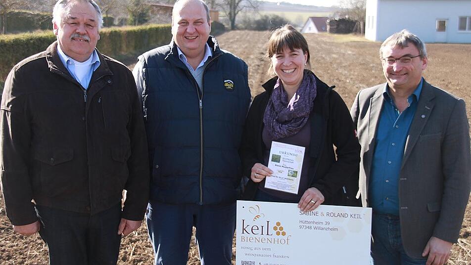 Sabine und Roland Keil leben in Hüttenheim. Ackerbau betreiben sie und seit vier Jahren eine Imkerei. Den Hof führen sie als Nebenerwerbsbetrieb. „Auch bei uns im Ort hat es Diskussionen gegeben“, erinnert sie sich. Rund 15 Prozent der Hüttenheimer haben sich in die Listen für das Volksbegehren eingetragen. Jetzt ist Sabine Keil gespannt, wie viele sich für ihr Projekt erwärmen.
