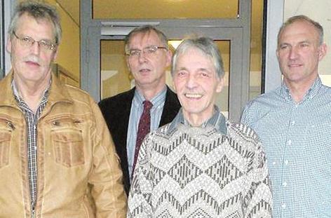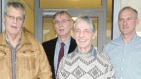 Der Leiter des LVFZ, Peter Lindner, und der Leiter des Arbeitsbereichs Gebäudeunterhalt und Betriebstechnik, Robert Sterk, verabschiedeten die beiden Mitarbeiter bei einer kleinen Feier, so der Pressetext. Im Bild (von links): Uhl, Lindner, Langguth und Sterk. Foto: steffek