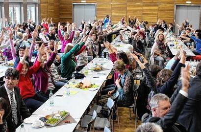 So verschlechtert sich etwa das Aufstehen von einem Stuhl im Alter um 11 Prozent pro Jahr. Die gute Nachricht: Die Muskelkraft ist bis in hohe Jahre trainierbar. Deshalb zeigt Oberst den Besucherinnen verschiedene Übungen, mit denen sie sich im Alltag fit halten können. Zum Beispiel, indem sie sich auf eine Stuhlkante setzen und zehn Mal aufstehen. Oder sich hinter den Stuhl stellen und Kniebeugen machen. Ebenfalls trainiert werden kann Standhaftigkeit in Krisen. Das ist das Thema, das Psychologin Katharina Maehrlein am Nachmittag aufgreift.