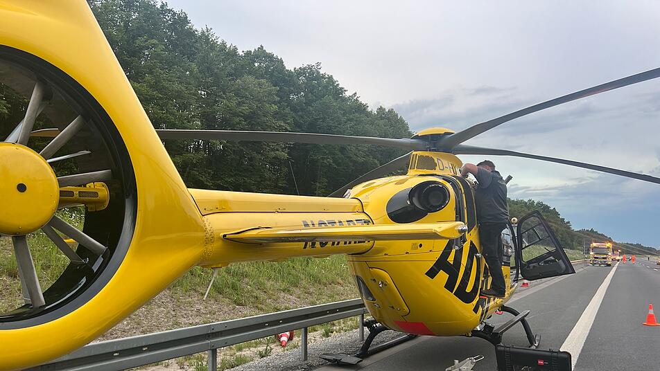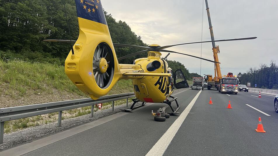 Autounfall auf der A3 bei Wiesentheid - Rettungshubschrauber musste repariert werden