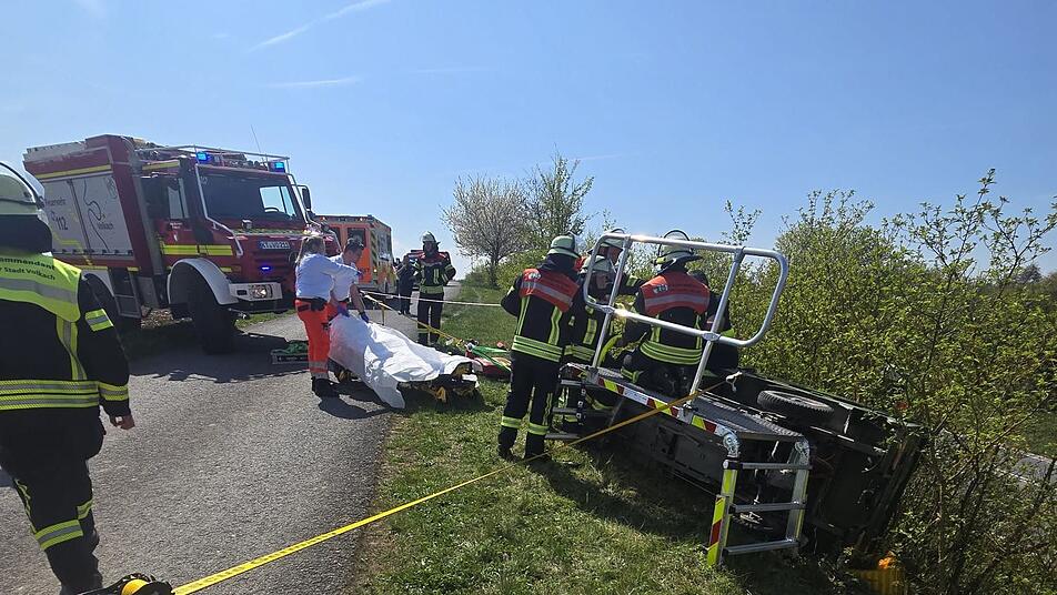 Ein Elektro-Lastendreirad ist bei Volkach (Kreis Kitzingen) von einem Feldweg abgekommen und beinahe einen Abhang hinabgestürzt. Der Fahrer sei am Samstagmittag (18. April 2026) gegen 12 Uhr aus zunächst ungeklärter Ursache mit dem Fahrzeug in ein angrenzendes Gebüsch geraten und dort auf die Seite gekippt, teilte die Polizei mit. Demnach habe das Dreirad samt des in der Fahrerkabine eingeschlossenen Fahrers gedroht, den steilen Abhang zu einer parallel verlaufenden Straße hinabzustürzen.
