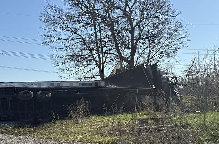 Das Fahrzeug wurde bei dem Unfall stark beschädigt. Ein Bergungsunternehmen schleppte den Sattelzug ab.