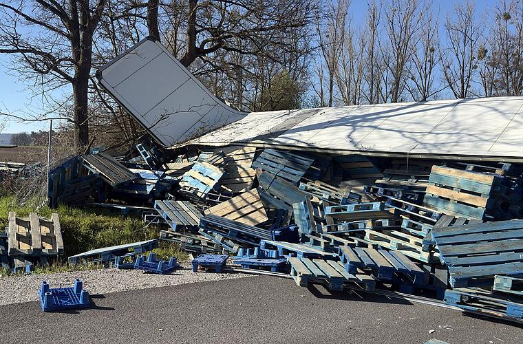 Das Fahrzeug wurde bei dem Unfall stark beschädigt. Ein Bergungsunternehmen schleppte den Sattelzug ab.