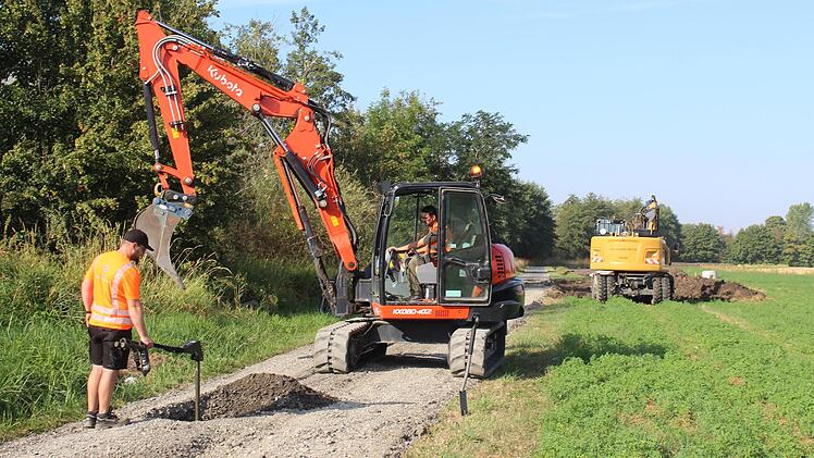 Für einen guten Ablauf der Arbeiten sind die kampfmitteltechnische Untersuchung und die damit verbundene eventuelle "Bergung von Verdachtsanomalien" wichtig. Dafür zuständig ist die PD Bohr- und Sondiergesellschaft mbH mit Sitz in Schwarzach, die derzeit auf Höhe des Bibergeländes den Bereich des Radwegs inspiziert, dessen Asphaltdecke für diesen Zweck entfernt wurde.