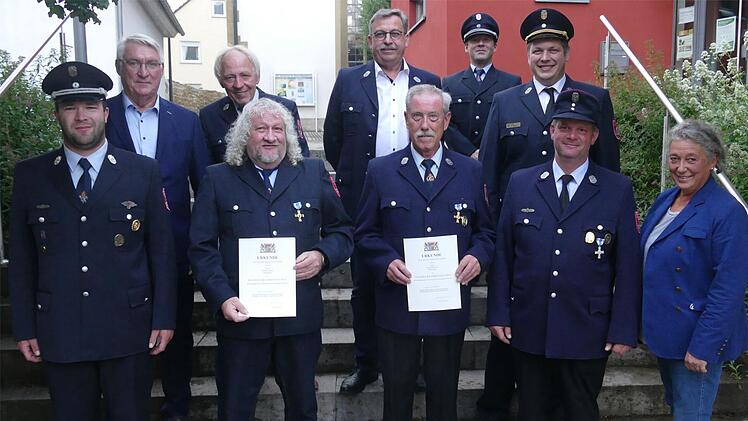 Die Ehrung verdienter Feuerwehrmänner und Verabschiedungen wegen Erreichens der Altersgrenze standen im Mittelpunkt der Mitgliederversammlung der Feuerwehr in Buchbrunn im Gemeindehaus Meuschel.