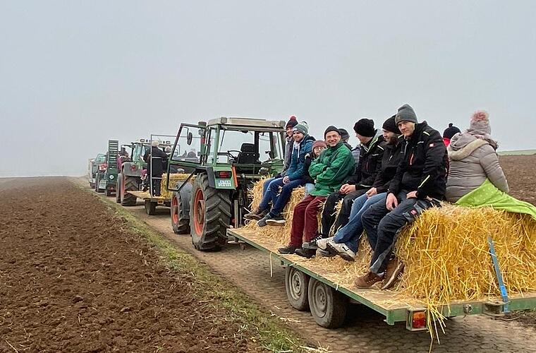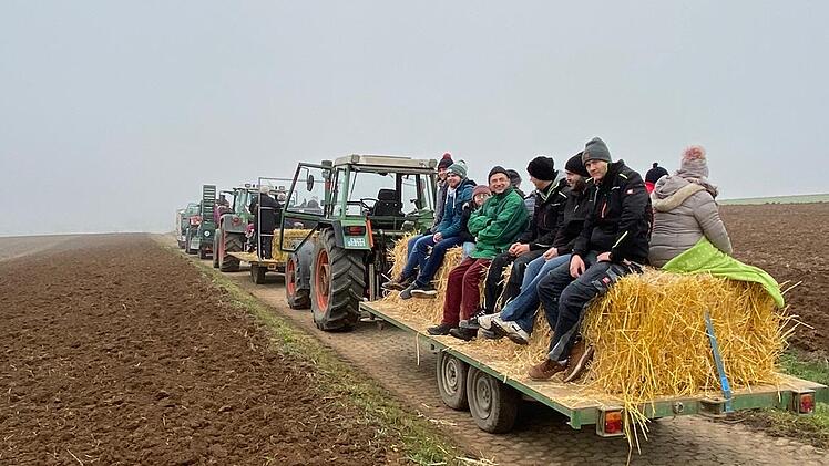 Über 40 Teilnehmer trotzten in Buchbrunn beim Gemarkungsgang dem dichten Nebel und den niedrigen Temperaturen. Auf drei Anhängern konnten interessierte Bürger die Grenzen ihrer Gemeinde erfahren. Bei eisigen Temperaturen sorgten zumindest die Strohballen als Sitzgelegenheiten für einen warmen Hintern, heißt es in einer Pressemitteilung. Los ging es am Dorfladen „KummRei“ über das Neubaugebiet Wiesenweg zur Obstanlage und das Dreiländereck, die Grenze zwischen Buchbrunn, Kitzingen und Repperndorf.