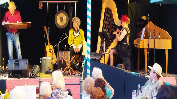 Es war ein ganzes Repertoire an Instrumenten wie Spinett, Trommel, Flöten, singende Säge die zum Einsatz kamen und den lustvollen oder dramaturgischen Ablauf begleiteten. Auch einzelne Musikstücke wie "Halleluja" mit der der singenden Säge und der Harfe vorgetragen, waren ein wahrer Genuss für die Zuschauer.
