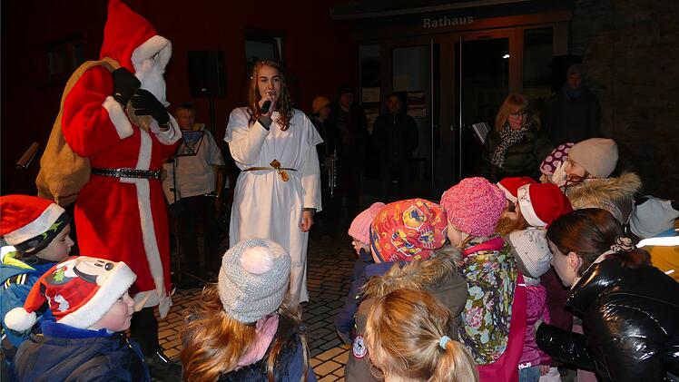 Zum Weihnachtsmarkt in Buchbrunn scharten sich am Vortag des ersten Advent jung und alt dicht gedrängt um das Rathaus.