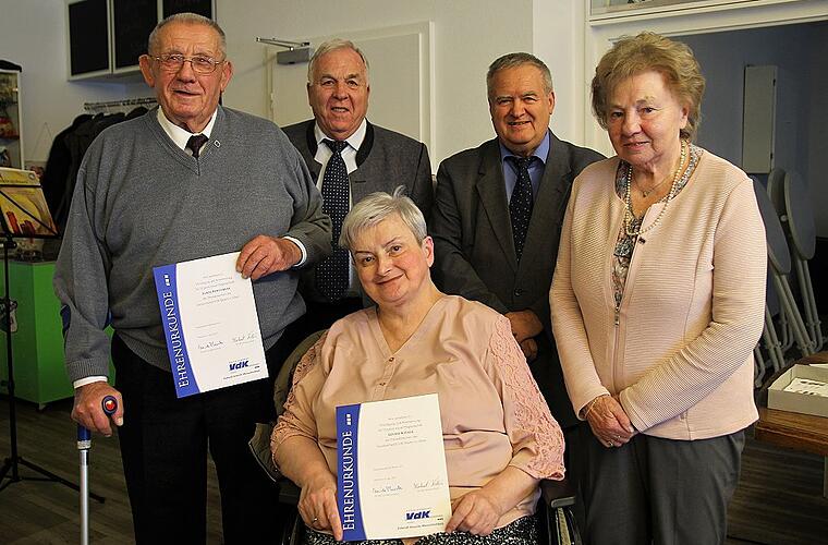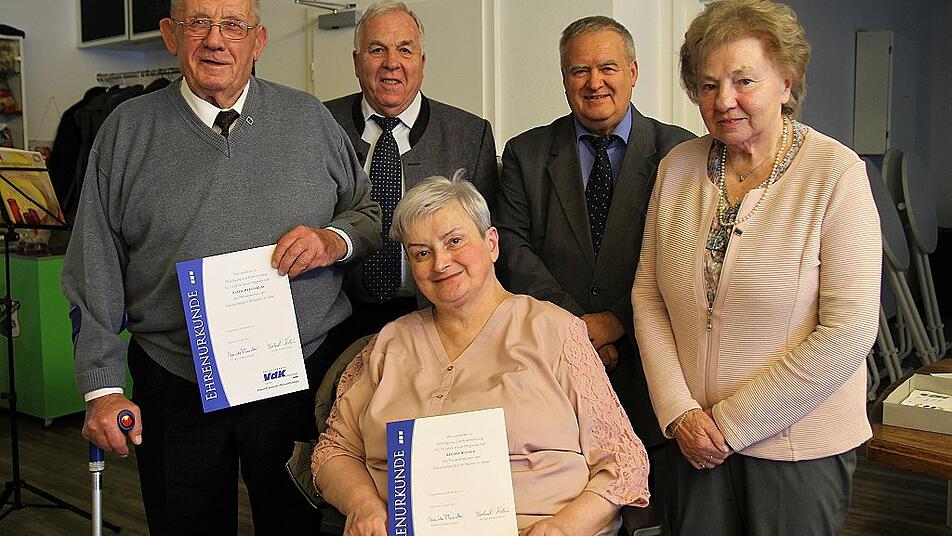 Seit fünf Jahren sind Ursula Schmitt und Edgar Vogt beim Ortsverband zur Stelle, wenn sie gebraucht werden. Stellvertretender Kreisvorsitzender Karl Memmel und Ortsvorsitzender Heinrich Schuster zeichneten die beiden ehrenamtlichen Helfer für ihre Verdienste mit der Ehrennadel des VdK aus. Ehrenamtliche Dienst am Nächsten sei heute keine Selbstverständlichkeit, sagte Schuster und wandte sich an die treuen Mitglieder.
