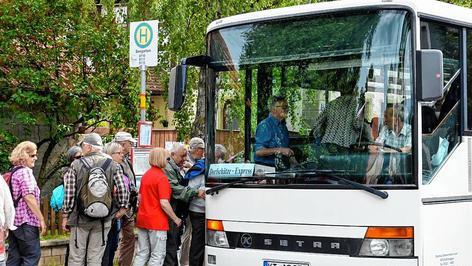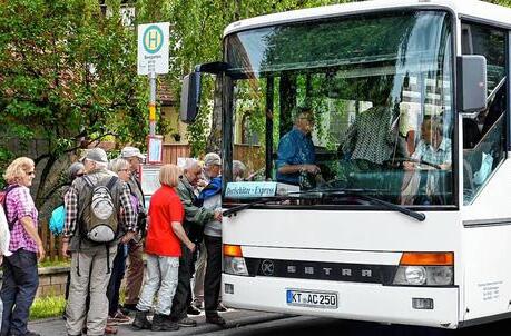 Mit dem Bus werden an den Wochenenden Touristen vom Bahnhof in Iphofen kostenfrei in die umliegenden Gemeinden befördert. „September und Oktober sind bombige Monate für uns. Die nutzen viele zum Wandern oder Bremser trinken“, sagt Inge Thomaier von der Geschäftsstelle der neun zusammengeschlossenen Gemeinden in Wiesentheid.