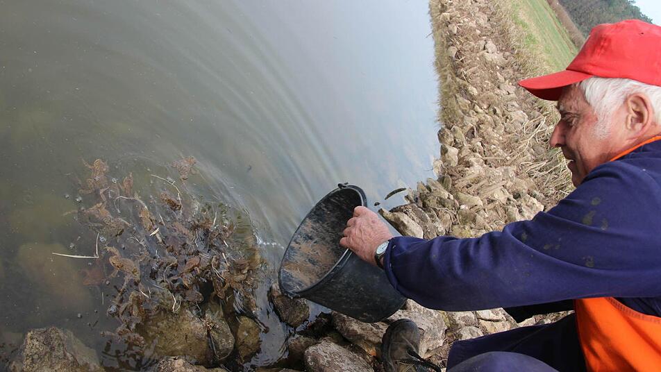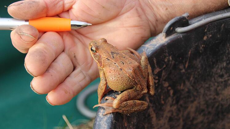 Zum Glück haben wir hier ein gutes Verhältnis zu den Teichbesitzern", sagt Rühl. Dass Frösche und Kröten Futterkonkurrenten der Karpfen sind, werde zugunsten der Artenvielfalt hingenommen. "Und die Amphibien ziehen sich nach vier bis sechs Wochen ja wieder in ihre Wälder zurück."