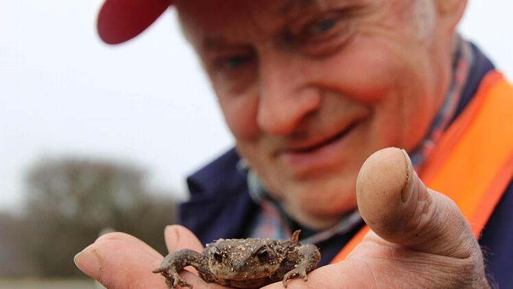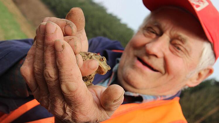 Die Fachleute dort sind froh, dass es Leute wie Herbert Rühl gibt. Drei bis fünf Wochen lang - je nach Witterung und Dauer der Amphibienwanderung - macht sich Rühl jeden Morgen auf, um drei Zäune in der Geiselwinder Gegend abzulaufen und die in den Eimern gefangenen Tiere über die Straße zu tragen. Seit gut 20 Jahren ist er schon Froschretter. "Ich bin mit der Natur aufgewachsen", erklärt der Landwirt im Ruhestand.