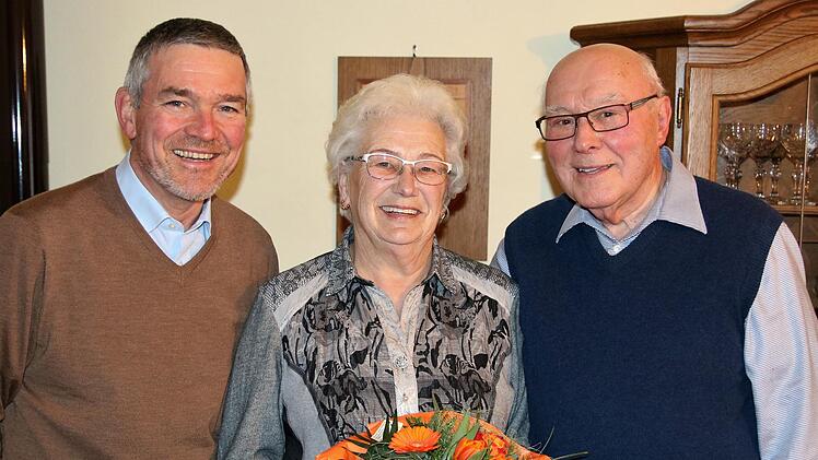 Dorothea und Johann Wehr aus Volkach feierten ihr 60-jähriges Ehejubiläum. Zur Feier im Bayerischen Wald kam die ganze Großfamilie mit den Kindern Thomas, Christine, Ulrike und Anja samt Familien, darunter 13 Enkel und sieben Urenkel. Bürgermeister Peter Kornell (links) überreichte dem Jubelpaar am Donnerstag Blumen zur Diamantenen Hochzeit.