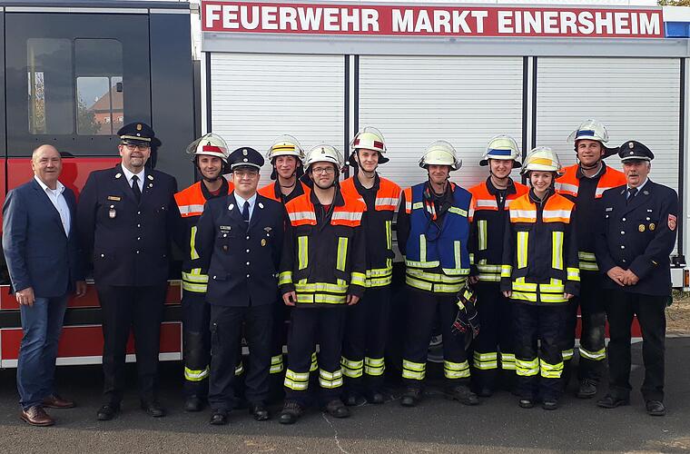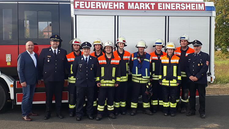 Die Freiwillige Feuerwehr Markt Einersheim absolvierte vor kurzem erfolgreich die Leistungsprüfung „Die Gruppe im Hilfeleistungseinsatz“. Die beiden Schiedsrichter Dirk Albrecht und Reiner Wirth, unterstützt durch Tobias Nahr, zeigten sich laut Pressemitteilung zufrieden mit der gezeigten Leistung und verliehen den Teilnehmern die Leistungsabzeichen in den Stufen Bronze (Stufe 1) bis Gold-Rot (Stufe 6). Bürgermeister Herbert Volkamer gratulierte im Namen der Marktgemeinde zur bestandenen Prüfung.