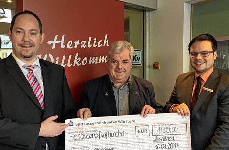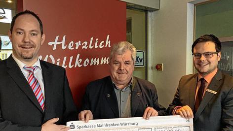 Die Sparkassenstiftung für die Stadt und den Landkreis Kitzingen unterstützt die Marktgemeinde Großlangheim mit einer Spende in Höhe von 1500 Euro. Das Geld wird für eine Tischtennisplatte auf dem Schulgelände verwendet. Bürgermeister Karl Höchner (Mitte) nahm einen Spendenscheck von Sparkassen-Gebietsdirektor Heiko Därr (links) und Geschäftsstellenleiter Cornelius Göb (rechts) entgegen, heißt es in einer Mitteilung. Foto: TAMARA KAPP