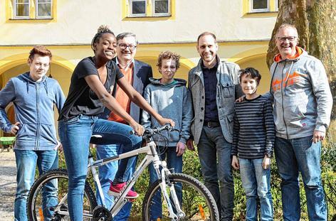 Über ein Geschenk können sich die Internatsschüler des Franken-Landschulheims Schloss Gaibach freuen: Bernhard Müller von müller's motorRadladen aus Gerolzhofen übergab ein Fahrrad im Wert von 699 Euro.