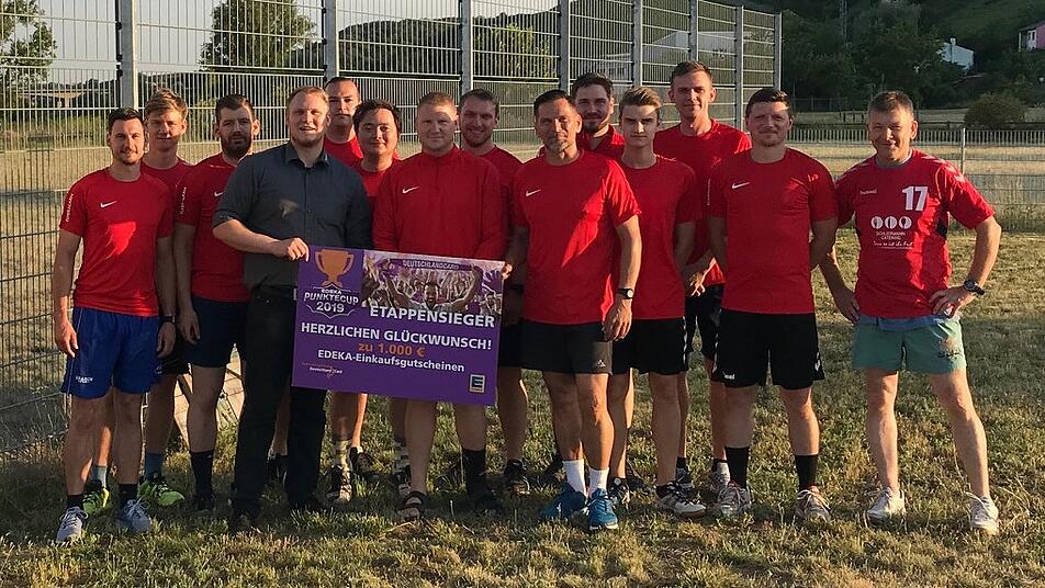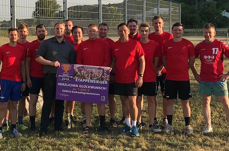 Im Rahmen des Edeka Punktecups wurden am Dettelbacher Beach-Handballplatz Edeka-Einkaufsgutscheine im Wert von 1000 Euro an den Turn-Verein Dettelbach übergeben, so eine Pressemitteilung.Der Sportverein möchte nach Auskunft des Vorsitzenden Volf Andrei die Finanzspritze nutzen, um Getränke und Lebensmittel für den regelmäßigen Vereinsbedarf zu beschaffen. So kann die Vereinskasse entlastet und die Einsparung für Trainings- und Spielbetriebsmaterial genutzt werden.Nathan Schliermann, der zusammen mit seinem Bruder Darius das Familienunternehmen Schliermann führt, freut sich, dass ein Sportverein aus ihrem Ort gewonnen hat. „Das Engagement in Sportvereinen ist für uns alle wichtig. Sie stärken den Zusammenhalt in der Region“, so der selbstständige Edeka-Einzelhändler aus dem Landkreis Kitzingen.