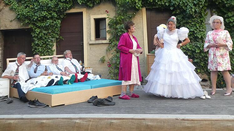 Anschließend gibt in dem Stück "Die Nacht der Nächte" die Theatergruppe unter Leitung von Elfriede Sinn Einblicke in die "erregenden" Geheimnisse eines Brautgemachs in der Hochzeitsnacht.