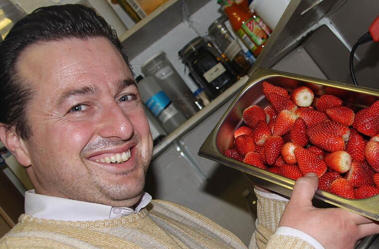 So richtig zum Reinbeißen sehen sie aus, die prallen Erdbeeren. Doch nix da. Zullo Velija haut jedem auf die Finger, der den Früchten zu nahe kommt. Er hat sie bereits abgewogen. Aus ihnen soll frisches Erdbeereis werden. Der Eismacher ist in seinem Element.