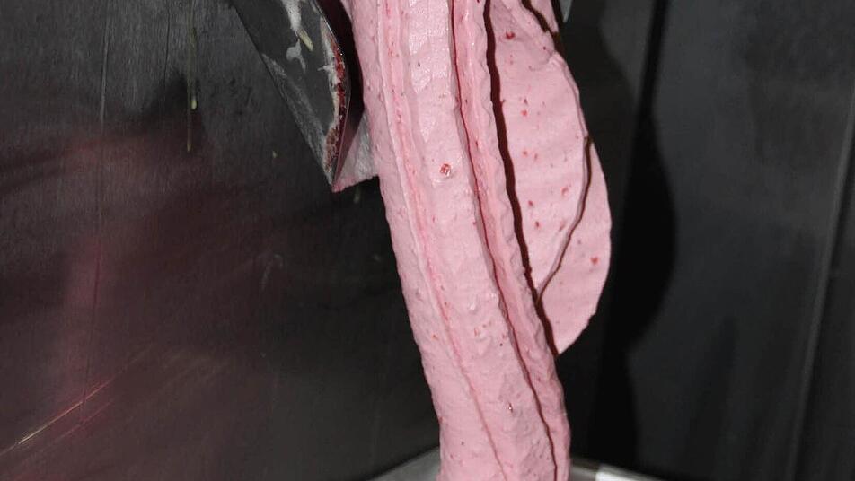 Die Eismaschine piepst. Zullo holt eine Frischeschale aus der Kühltheke. Er betätigt einen Hebel und schon windet sich eine hellrote Schlange aus der Front der Eismaschine. Der Chef ist zufrieden: "So cremig muss es sein."